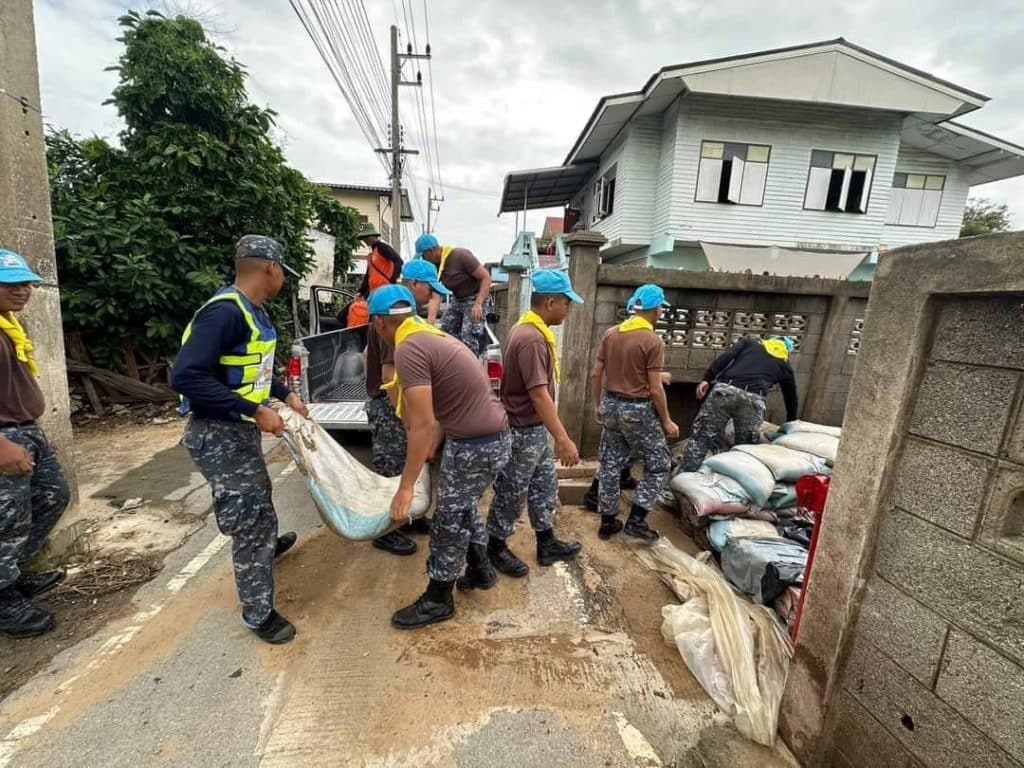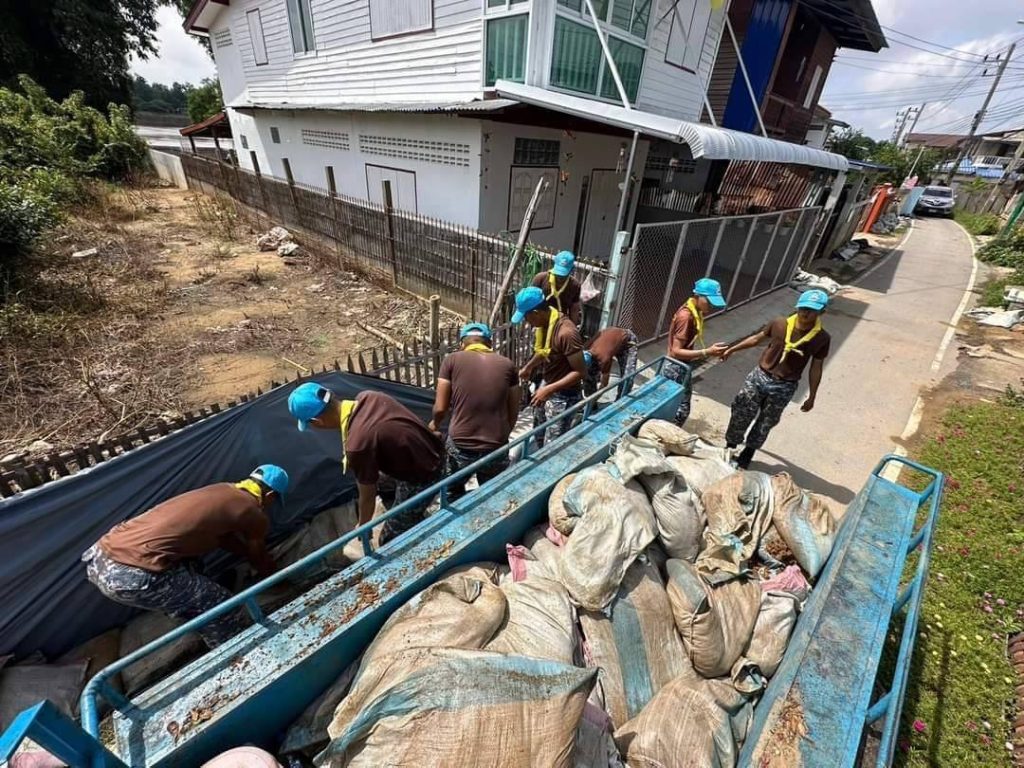 กองบิน 4 ร่วมใจชาวสรรพยา ฟื้นฟูหลังน้ำลด ทหารจิตอาสาเร่งรื้อถุงทราย คืนพื้นที่ให้ชาวบ้าน พร้อมใจกันน้อมรำลึกในพระมหากรุณาธิคุณในวันปิยมหาราช #กองบิน4 #กองทัพอากาศเคียงข้างประชาชน