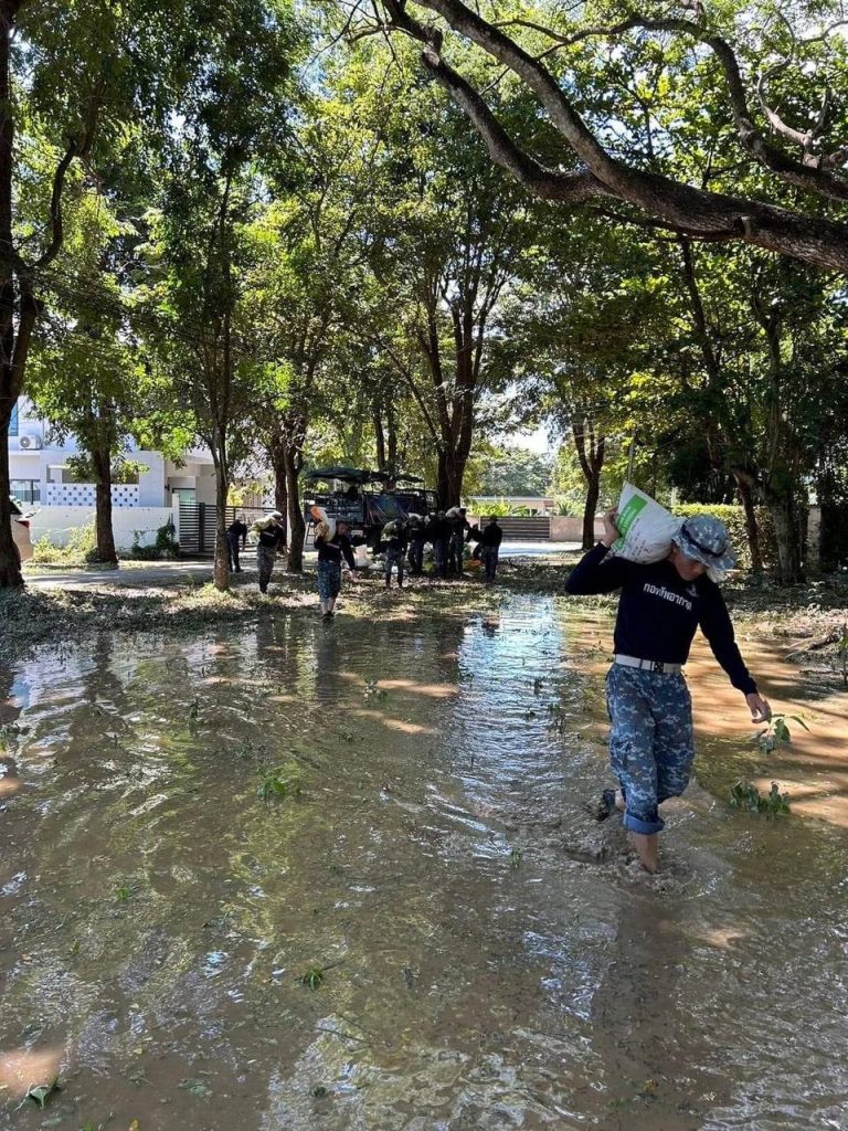 แม้ว่าสถานการณ์น้ำท่วมในเชียงใหม่บางพื้นที่จะคลี่คลายลงแล้ว แต่ยังมีพี่น้องอีกจำนวนมากที่กำลังประสบความยากลำบากจากน้ำท่วมสูง ขาดไฟฟ้า และน้ำประปาใช้ ผู้บัญชาการทหารอากาศเล็งเห็นความสำคัญ จึงได้มอบหมายให้กองบิน 41 นำข้าวสาร อาหารแห้ง ไปสนับสนุนโรงครัวชุมชน เพื่อปรุงอาหารแจกจ่ายให้กับผู้ประสบภัย รวมถึงเร่งสร้างแนวกันน้ำ เพื่อป้องกันความเสียหายจากฝนและน้ำหลากที่เกิดขึ้นอย่างต่อเนื่อง กองทัพอากาศจะอยู่เคียงข้างพี่น้องชาวเชียงใหม่ จนกว่าสถานการณ์จะกลับเข้าสู่ภาวะปกติ #Saveเชียงใหม่ #ใจถึงใจไปทันที #กองทัพอากาศ #กองบิน41 #UnbeatableAirForce