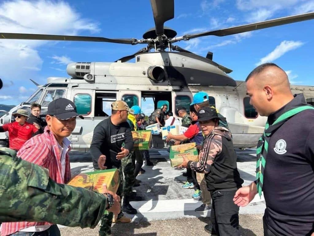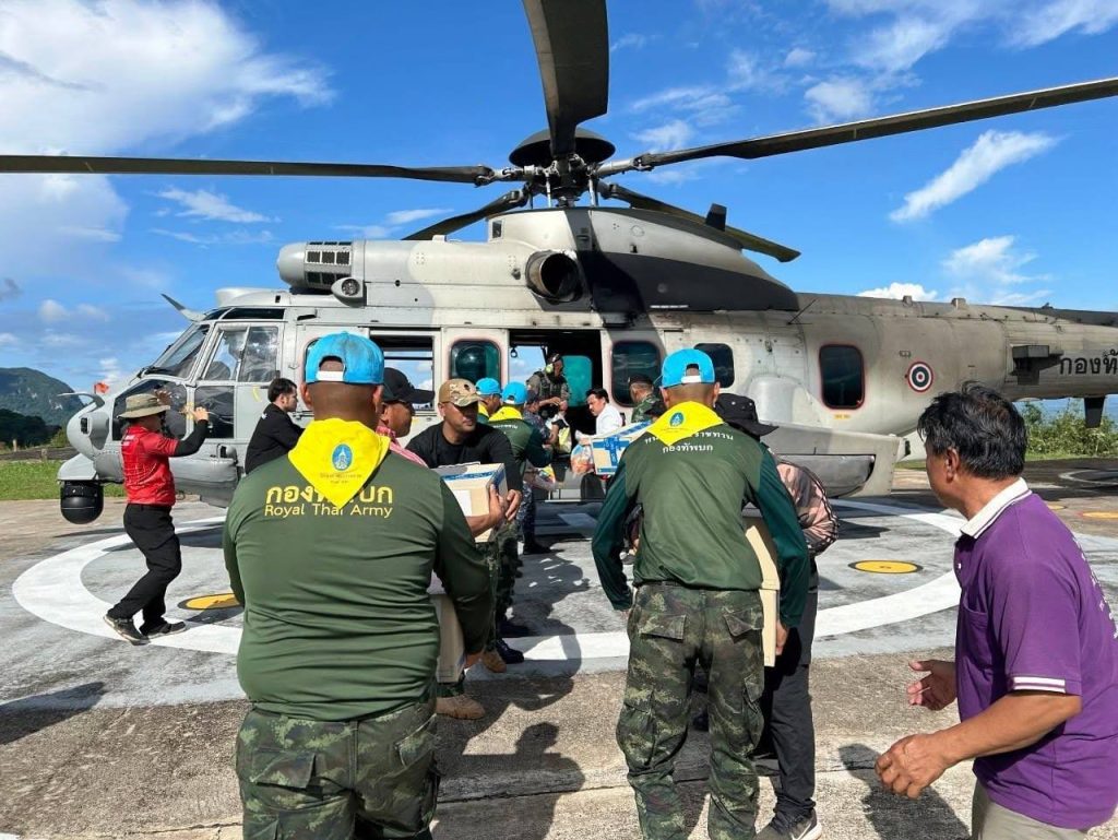 เฮลิคอปเตอร์ EC725 กองทัพอากาศ ได้รับมอบหมายภารกิจสำคัญในการส่งมอบถุงยังชีพและสิ่งของจำเป็นไปยังพื้นที่ประสบภัย 3 แห่ง ได้แก่ ดอยตุง บ้านผาฮี้ และบ้านป่ายางอาข่า ซึ่งเป็นพื้นที่ที่ได้รับผลกระทบหนักที่สุด เนื่องจากเส้นทางคมนาคมถูกตัดขาด ทำให้การขนส่งด้วยยานพาหนะทางบกเป็นไปไม่ได้